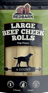 This is a great value because it takes him 4-5 days to chew the whole thing. Beef cheek rolls are made from the cheek skin, which is thinner, more digestible, and less processed than rawhide. Beef cheek softens as the dog chews and breaks into small, digestible pieces.